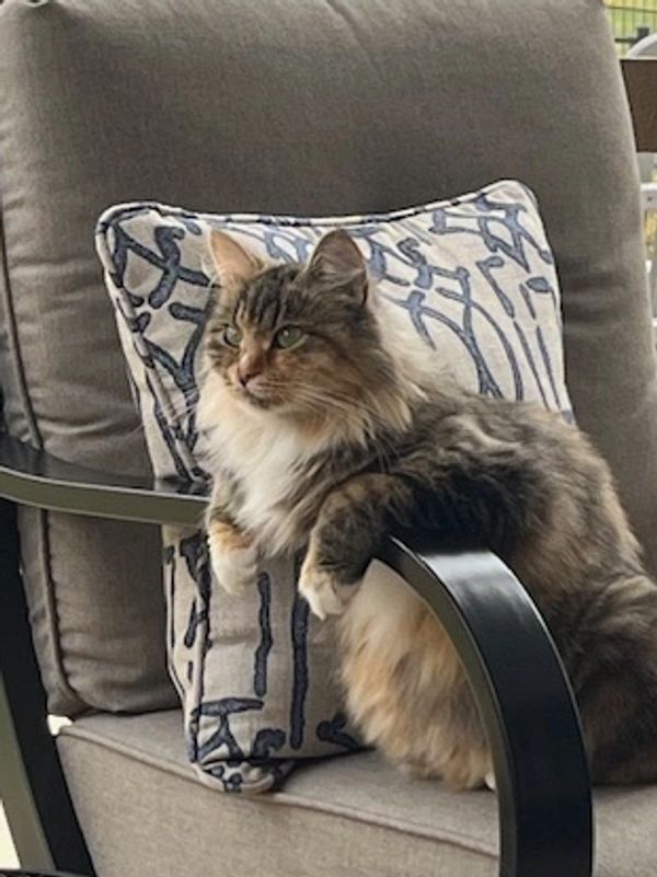 Mila is the trailblazer for us. She was our first Siberian, and we fell in love right away! She was all alone with us humans for a good while. We brought Silas and the rest of the ladies in after her. She has handled it with elegance and grace and usually introduced herself with a quick hiss/growl then they were all best buddies, lol. She's a momma's girl, when momma pats the couch cushion beside her, Mila jumps up and assumes her position to receive some petting. It's always sweet when she graces us with her presence, she's a wonderful girl to have around. She is an amazing momma to her kittens. She tends to all their needs and sprints to them if any of them ever make so much as a peep. She's definitely the sassiest, she doesn't take any junk from other cats or any humans either.